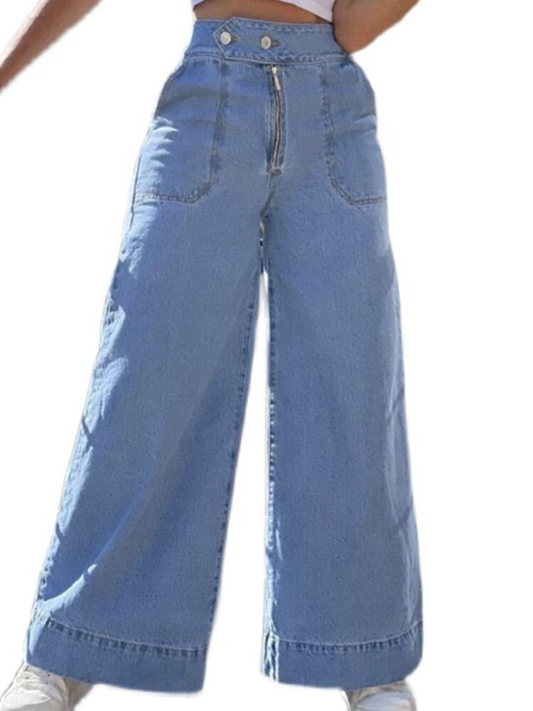 WITHZZ Spring Autumn Women's High Waist Casual Blue Denim Wide Leg Pants Loose Jeans Female Trousers Jeans