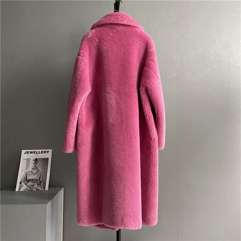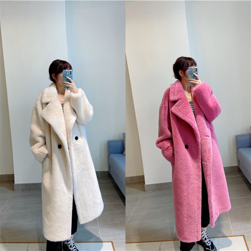 Korean Fashion 100%Wool Coat Women Big Turn-Down Collar Solid Elegant Long Winter Jacket 2022