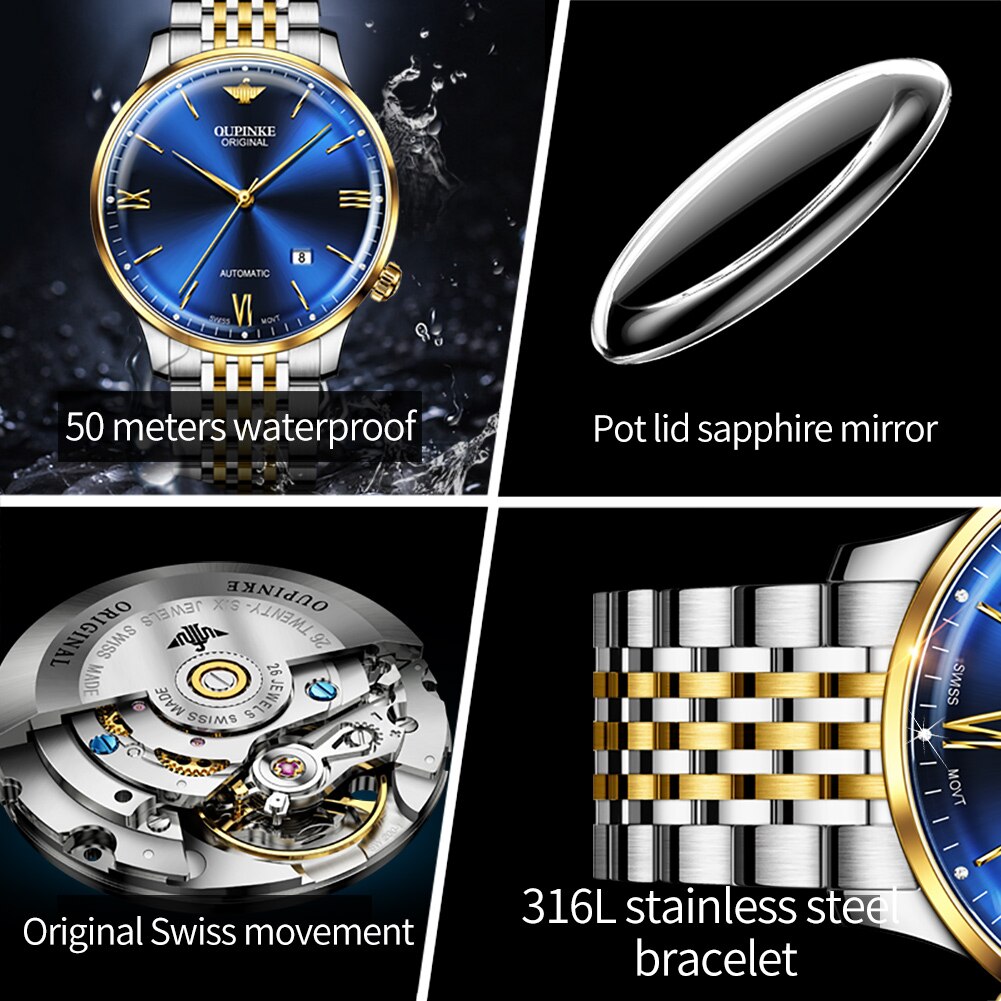 OUPINKE Ultra Thin Mechanical Watches for Men Original Swiss Movement Luxury Sapphire Crystal Mirror Man Waterproof Wristwatch