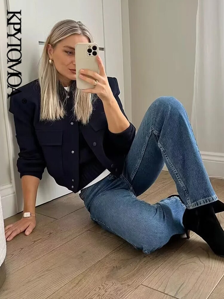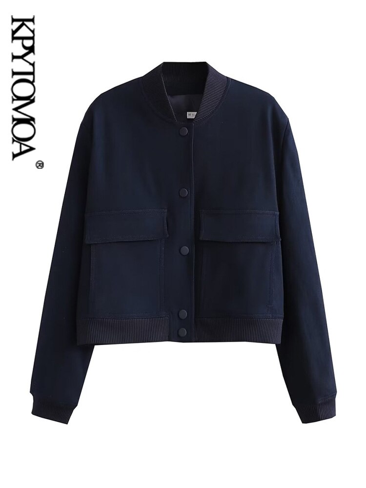 KPYTOMOA Women Fashion With Pockets Loose Bomber Jacket Coat Vintage Long Sleeve Front Button Female Outerwear Chic Tops