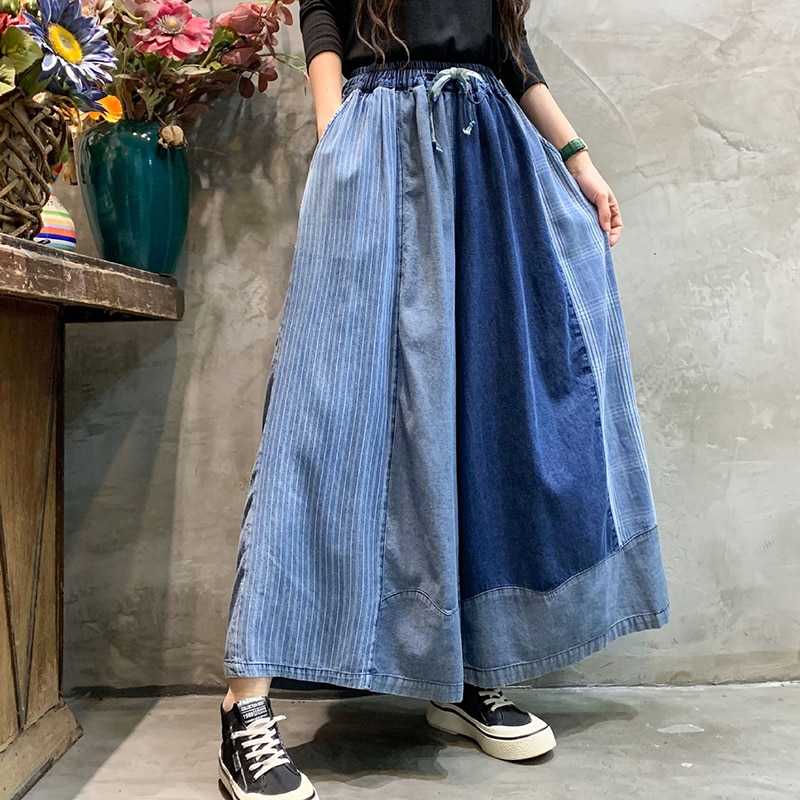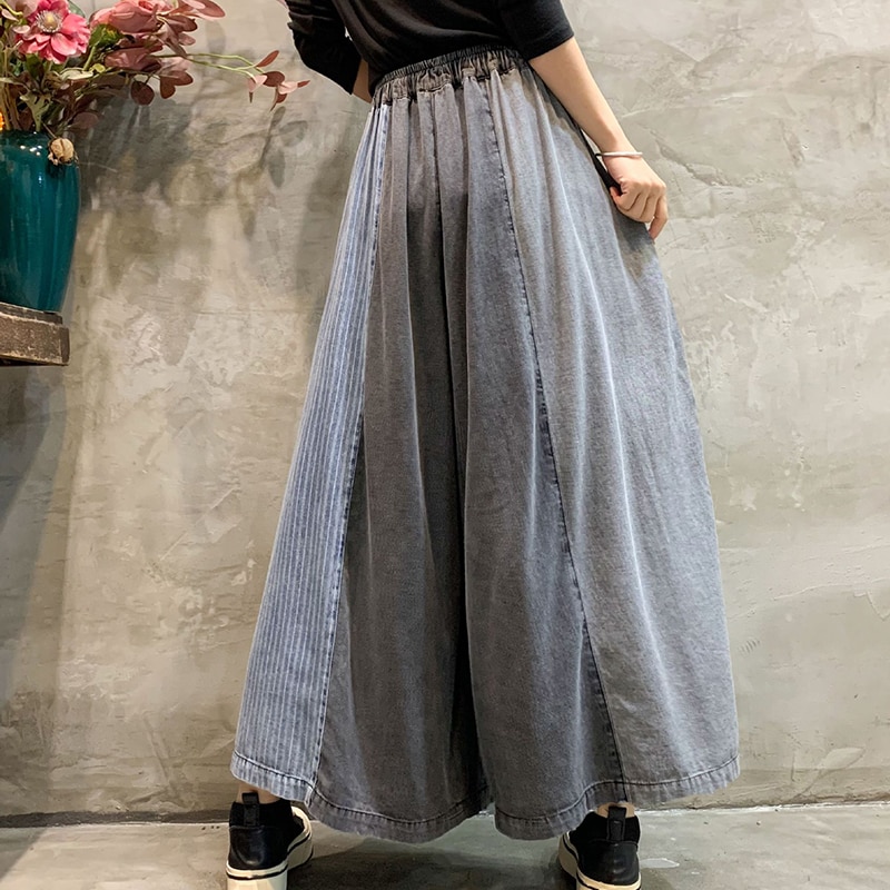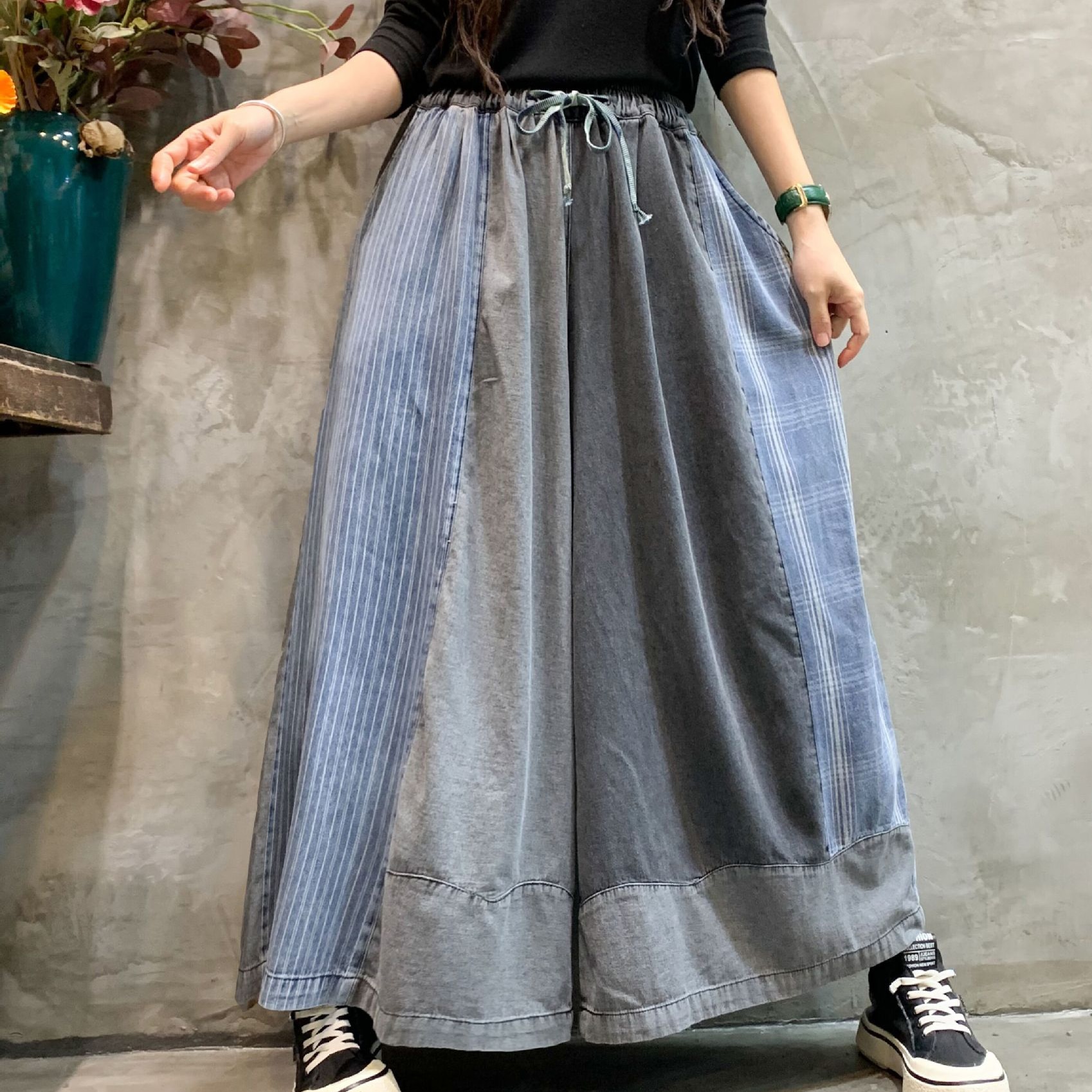 Denim Wide Leg Pants 2023 Spring New Fashion Color Matching Old Large Size Culottes Ankle Length Pants Women Baggy Jeans 2330