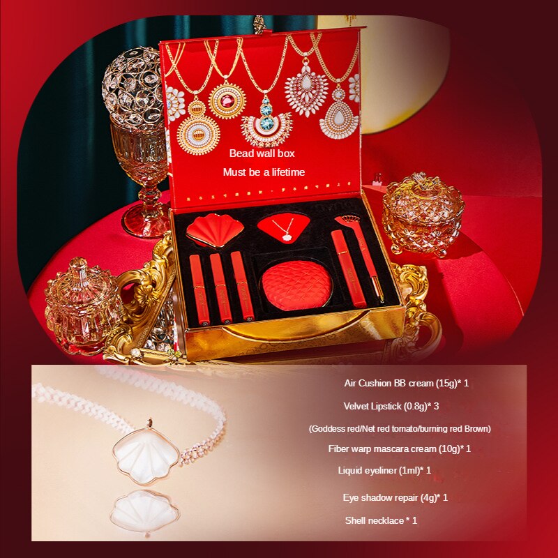 Color Makeup Set 8-piece Cosmetics Set Beauty Makeup Gift Box Valentine's Day Chinese Red Gift Set Kids Makeup Set for Girls