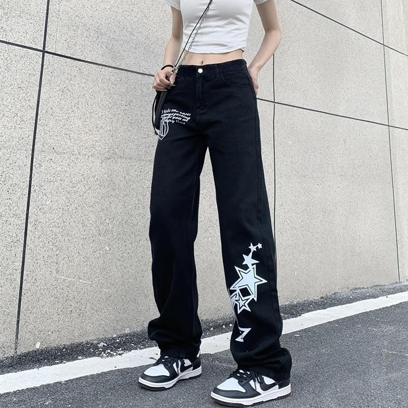 y2k high street old casual jeans star letter printing high waist fashion loose trousers 2023 trend men's and women's trousers