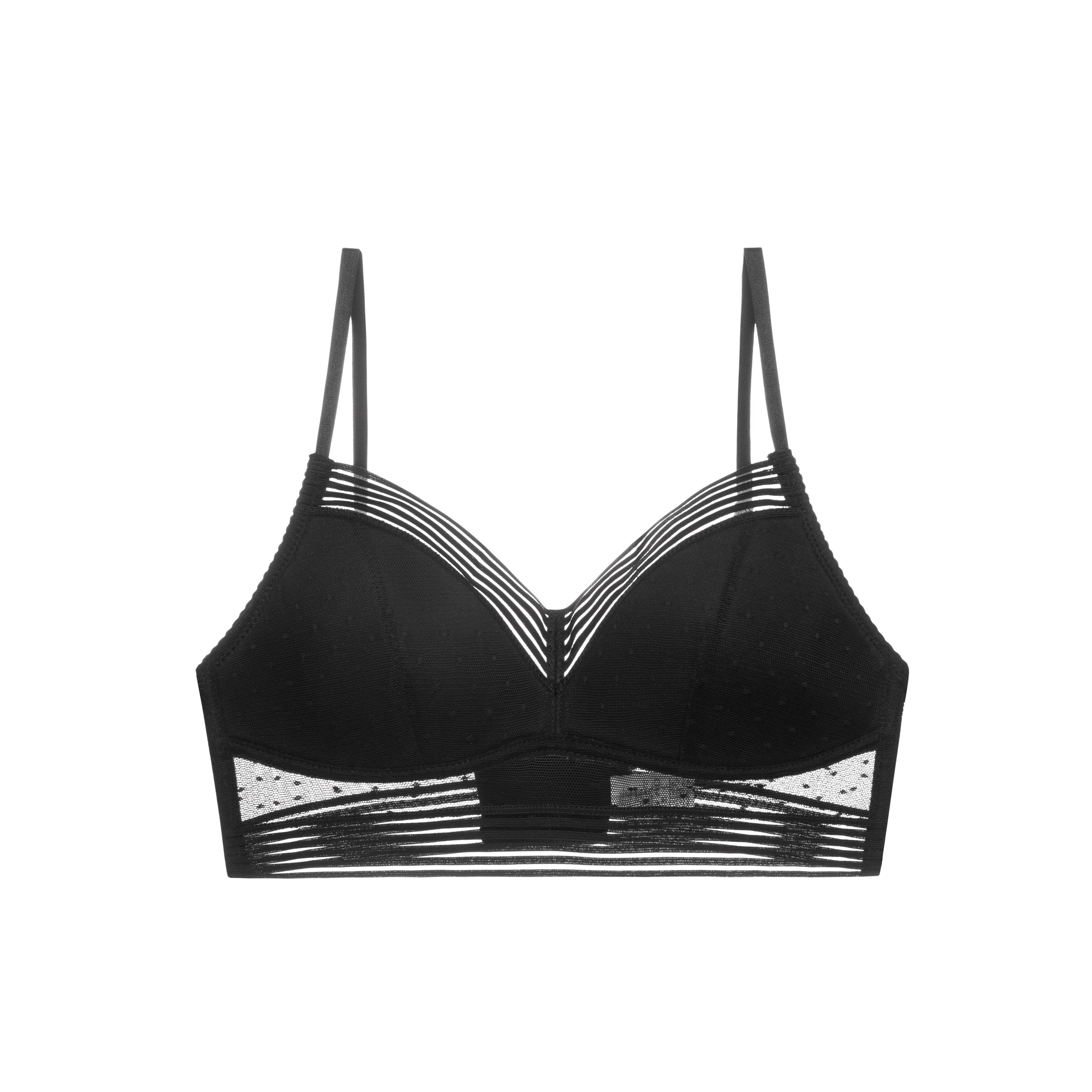 Sexy Bra Ultrathin Large Size Spongeless Steel Rimless Bra Black Wave Dotted Lace Bra Gather U-Shaped Bra Girl