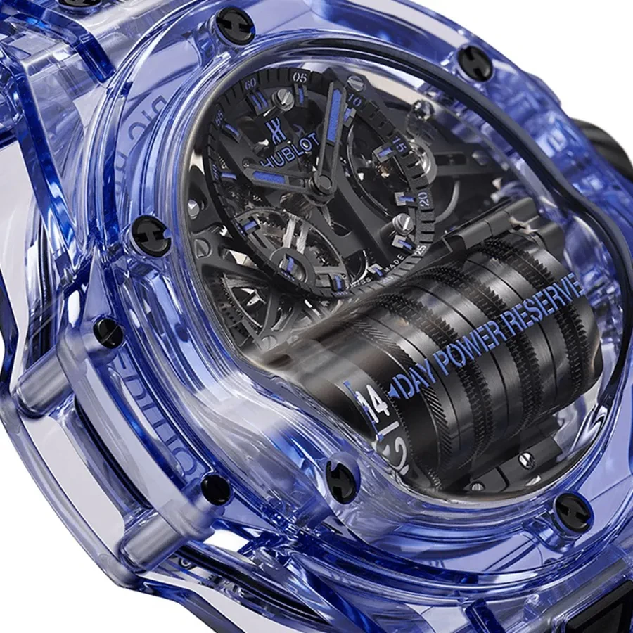 Hublot MP-11 Power Reserve 14 Days Blue Sapphire Watch 911.JL.0119.RX nằm trong bộ sưu tập Big Bang đình đám của hãng và được đánh giá là một trong những chất lượng được săn đón bởi giới một điệu. Quả không ngoa khi đánh giá đây chính là món phụ kiện dành cho quý ông trong để thách thức mọi ánh nhìn.