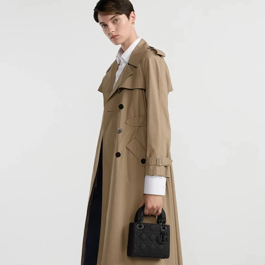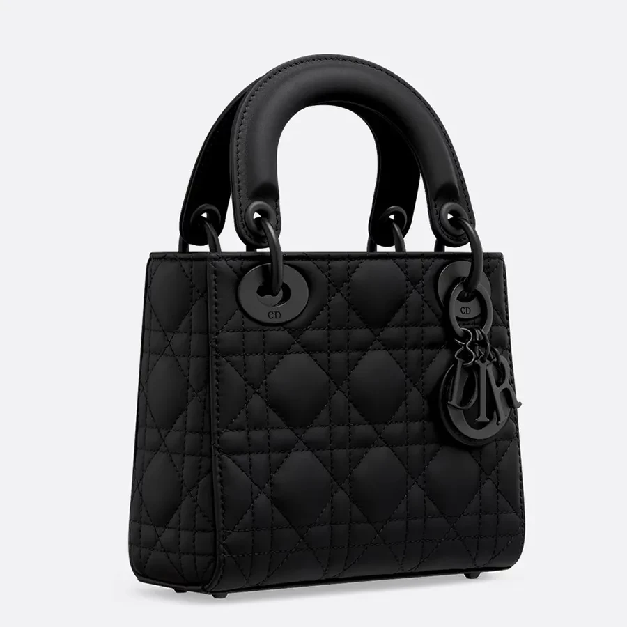Thiết kế túi kiểu dáng nhỏ nhắn, sang trọng nổi bật với những chiếc charm kim loại chữ "DIOR" mạ cùng tông màu đen làm nổi bật tổng thể. Với dây đeo vai dạng chuối  phôi da có thể tháo rời, chiếc túi Lady Dior thu nhỏ này có thể cầm tay hoặc đeo chéo như một người bạn đồng hành lý tưởng cho mọi trang phục.